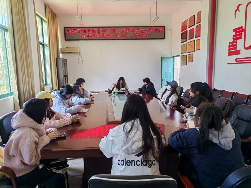 为持续深化团员青年的纪律观念,强化团学骨干的责任担当,推动团组织建设更加规范有序,4月1日,beats365官方网站团委委员及学生会全体成员联合开展《中国共产主义青年团纪律处分条例(试行)》专题学习活动,旨在以学促行、以规正风。会议由团委副书记施欣怡主持。
