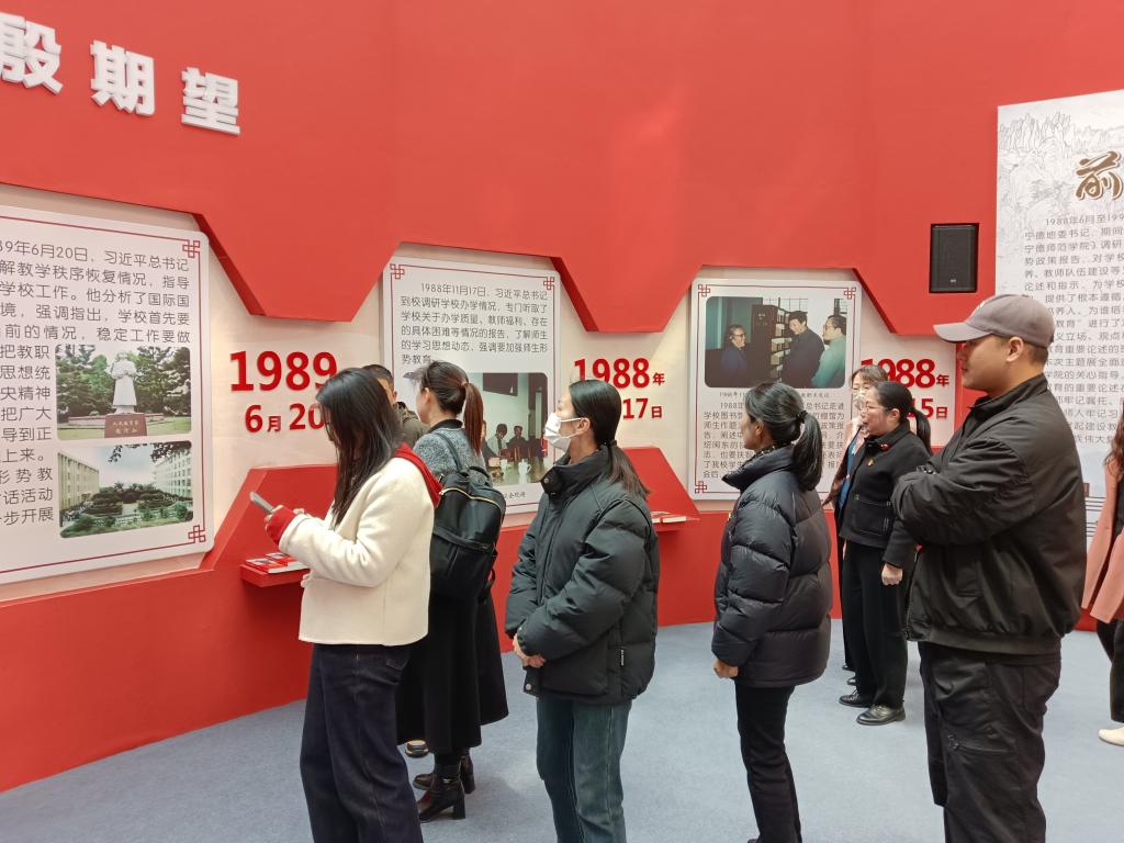 为深入学习贯彻习近平新时代中国特色社会主义思想,推动深入贯彻中央八项规定精神学习教育走深走实,激励党员教师牢记嘱托、感恩奋进,我院教师支部4月1日组织支部党员教师参观习近平总书记“六进宁师”主题展。
