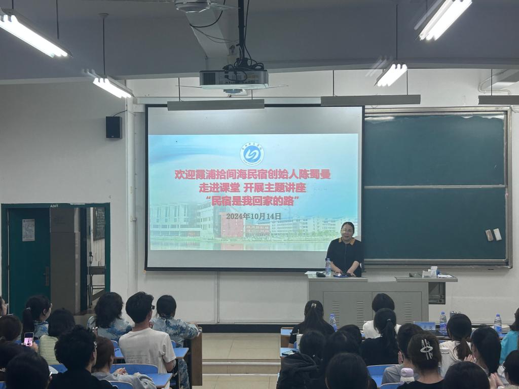 10月14日,我院邀请霞浦拾间海民宿创始人陈蜀曼女士开展题为《民宿是我回家的路》的主题讲座。此次讲座吸引了众多对民宿行业和乡村旅游感兴趣的同学和老师前来聆听。张光英院长主持了讲座。