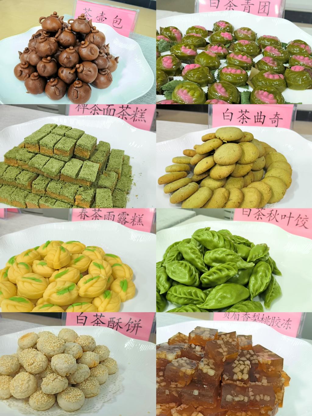 讲座现场师生品尝白茶酥饼、白茶青团、禅茶面茶糕、白茶曲奇、茶壶包、白茶秋叶饺、春茶雨露糕、贡眉香梨桃胶冻等八种茶点,切身感受茶叶与饮食的融合实践,震撼非常。本次讲座也为学院推进校企合作,移动课堂奠定良好的基础。