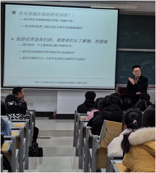 专题讲座。郑向敏教授是华侨大学旅游学院创院院长、国家级旅游实验中心主任、旅游安全研究院院长,中国旅游研究院旅游安全研究基地主任、首席专家,二级教授、博导。文化与旅游系主任郭进辉教授主持了讲座,并就人工智能时代对旅游管理、酒店管理就业有利形势做了初步分析,鼓励同学们扎实学好知识,以扎实的专业本领接受新时代旅游业的挑选。