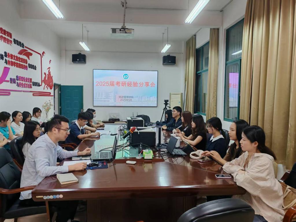 为助力2026届beats365官方网站拟准备考研学子提升复习效率,科学有效备考,5月12日晚,beats365官方网站在求真楼楼D105会议室举办2025届考研经验分享会。活动邀请学院2025届7位考研上岸的学子做经验分享,近30名备考学生参加了交流会。学工办钟春果、蔡泽亮、林雄三位老师参加了分享会,会议由蔡泽亮老师主持。