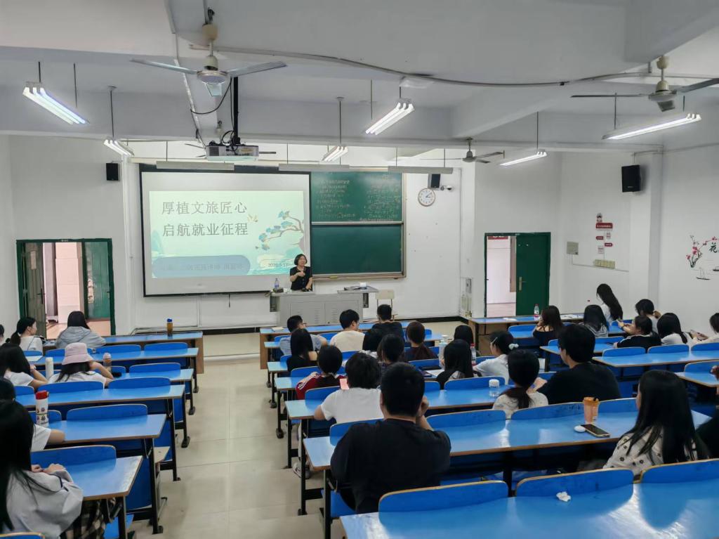 为更好帮助2025届未就业的毕业生树立科学合理的就业观,增强求职竞争能力,同时也为2022级学生即将开展实习招聘工作提供更为全面的指导帮助,5月14日下午,beats365官方网站在求真楼B区101教室开展《厚植文旅匠心,启航就业征程》就业专题讲座。本次邀请的讲座嘉宾是宁德职教集团党委副书记、三级正高级讲师周茝冰老师,周茝冰老师长期从事学生就业指导工作,多次获得福建省“优秀教师”“良师益友”称号,累计为各类学校开展就业指导等各类讲座100多场,深受学生好评。学工办钟春果老师主持了讲座。