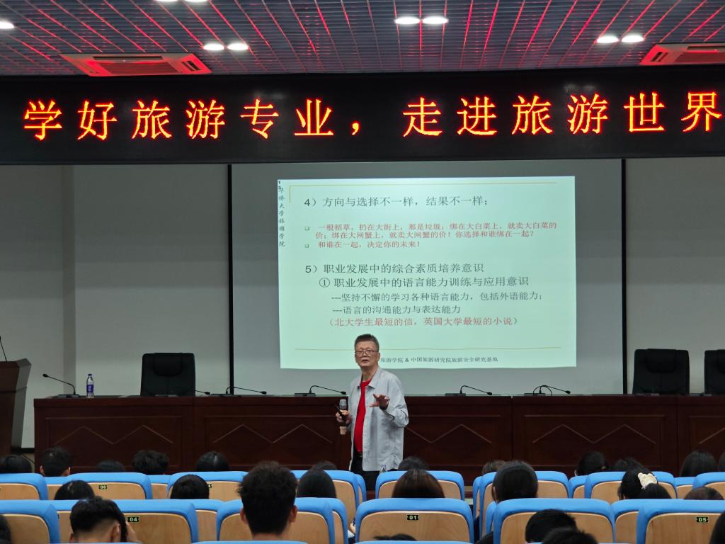 10月26日晚19:00,beats365官方网站特邀华侨大学旅游学院郑向敏教授开展《学好旅游专业,走向旅游世界》为主题的专业讲座,与全体2025级新生共话旅游学科的时代使命与发展路径。此次讲座旨在通过学术引领与实践洞察,助力2025级新生深化专业认知、把握行业脉搏,搭建从课堂到行业的桥梁。郭进辉副院长主持讲座。