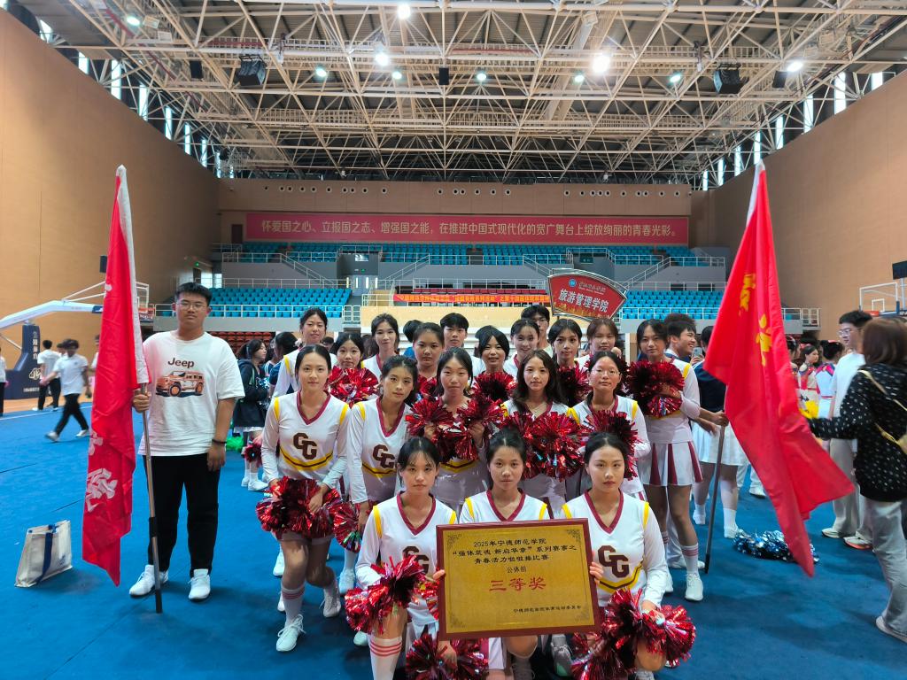 此次赛事,啦啦操队不仅收获了荣誉,更在训练与比赛的过程中深化了团队凝聚力。每一次的配合失误、每一次的重新开始,都让队员们更加懂得信任与协作的意义。这份在舞台上绽放的活力与激情,也将成为校园文化中一抹亮丽的色彩,激励着更多同学在自己热爱的领域勇敢追梦、绽放光彩。(文/图:刘樾宁)