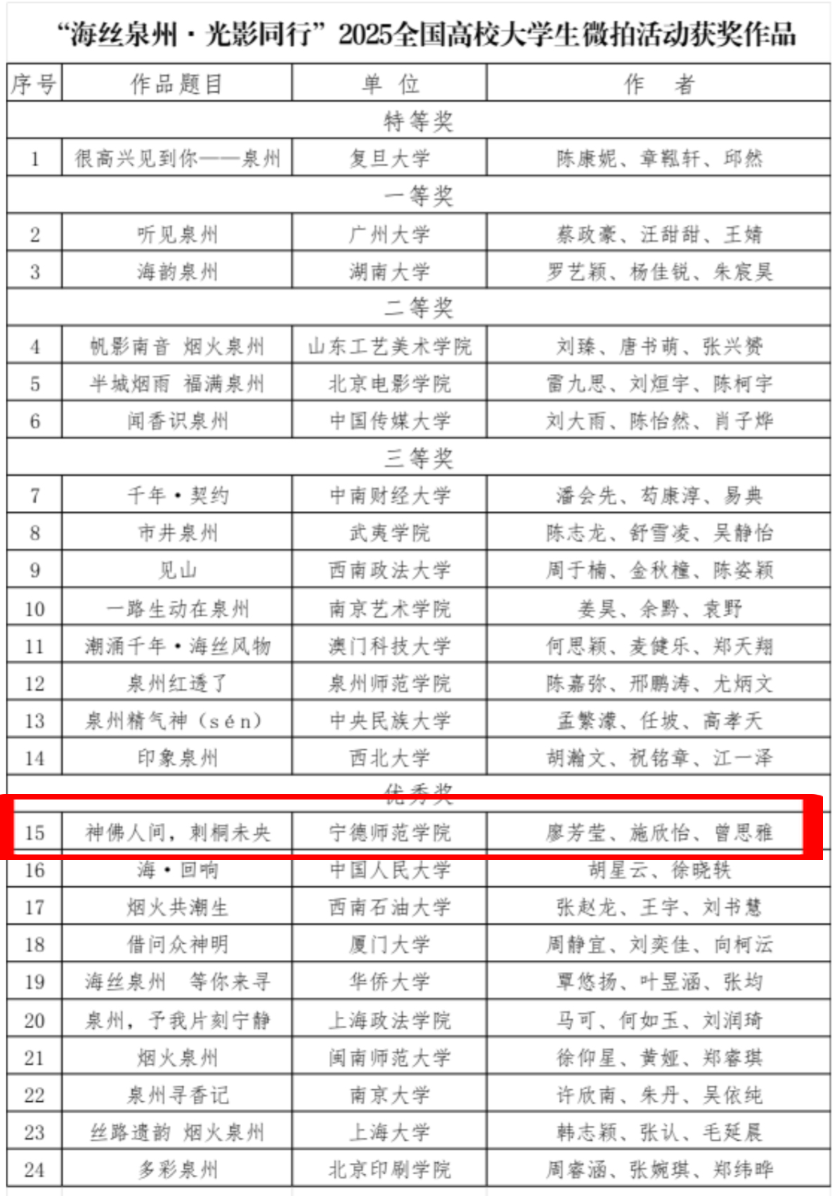 2025年11月3日,泉州市文化广电和旅游局正式公示“海丝泉州·光影同行”2025年全国高校大学生微拍活动获奖名单,beats365,beats365官方网站选派的学生团队凭借作品《神佛人间,刺桐未央》荣获优秀奖。这一成绩不仅彰显了学院在文旅融合人才培养中的创新实践,更以青年视角为海丝文化传承注入鲜活力量。